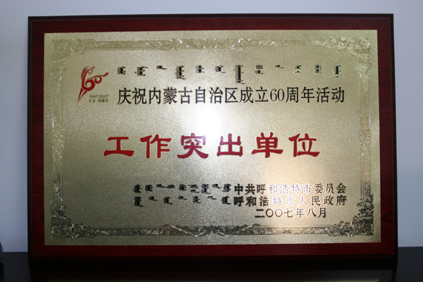 慶祝內(nèi)蒙古自治區(qū)成立60周年活動(dòng)工作突出單位