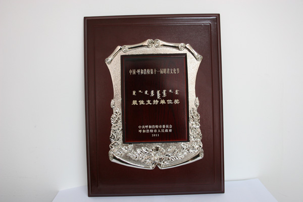 中國·呼和浩特第十一屆昭君文化節(jié)最佳支持單位獎