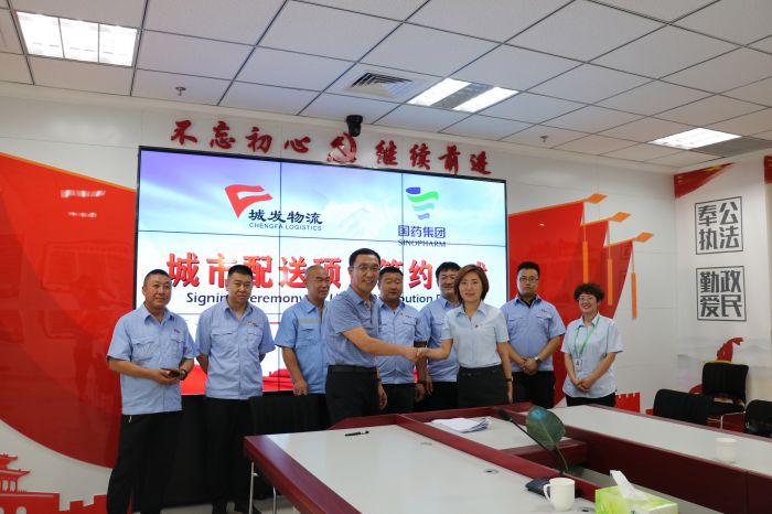 7月19日,城發(fā)物流有限責任公司與內(nèi)蒙古國大醫(yī)藥有限公司舉行了簽約儀式,雙方續(xù)簽了配送合同。物流公司董事長趙永強出席,并代表物流公司簽約。物流公司經(jīng)理丁雪峰、副經(jīng)理王亮、配送中心負責人呂先鋒等陪同出席。