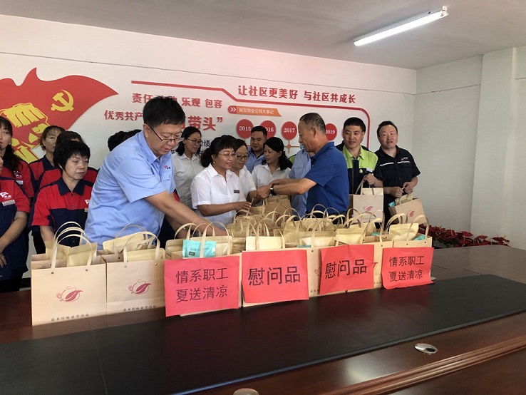 8月4日上午,公司工會在城發物業公司所服務的惠新苑、祥和苑、金城小區和橋靠分公司開展了送清涼慰問活動。慰問組一行給堅守工作崗位的物業職工送去茶葉、冰糖和綠豆,帶上了公司的關懷和慰問。
