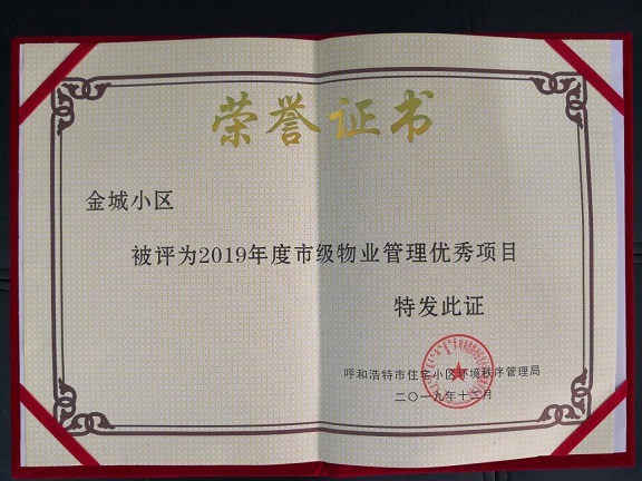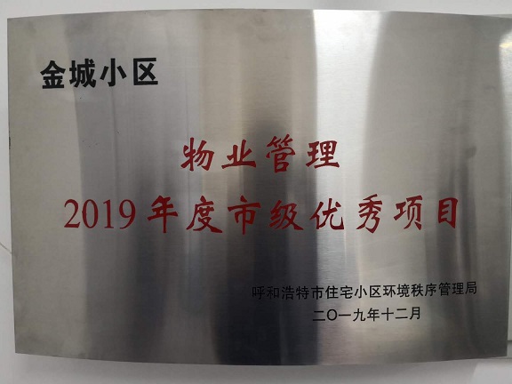 929日,城發物業金城小區項目被呼和浩特市住宅小區環境秩序管理局評為物業管理2019年度市級優秀項目。
