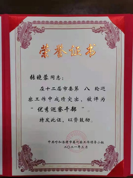 會上,中共呼和浩特市委巡察工作領導小組對十二屆市委第六輪巡察至第九輪巡察評選出的56名優秀巡察干部進行了表彰。
