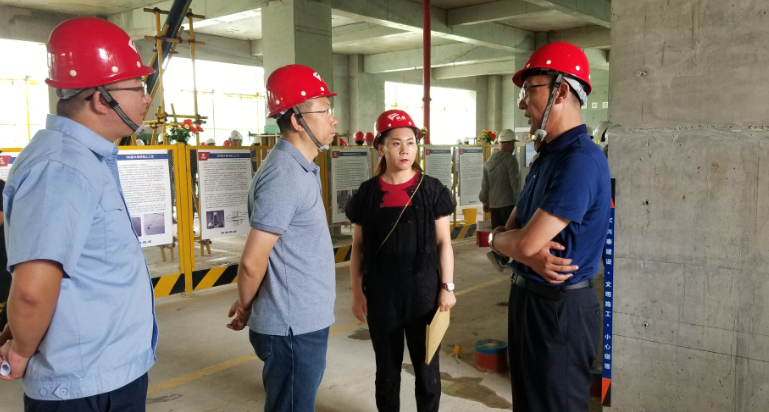 在接下來的現場觀摩環節,重點對項目標準化、綠色建設、數字建造等施工理念的應用和先進工藝進行展示。與會人員參觀了工程實體質量精益管控、BIM技術及動畫演示、噪音(粉塵)監測控制聯動系統等創新技術應用,聽取了興泰公司技術負責人現場講解和經驗介紹。