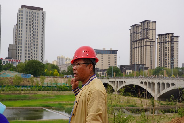 筆者來到成吉思汗大街與哈拉沁路交匯處的路口,遠(yuǎn)遠(yuǎn)就看見一臺重型吊車矗立在工地圍擋中,圍擋內(nèi)就是跨越東河頂管工程的施工現(xiàn)場。