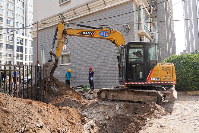 三合村第二運營所副所長白云偉介紹,"開天花園小區,分為二個作業區,分別為"直埋管道開挖、焊接、回填作業區"和"更換單元立管作業區"。目前,整個小區樓棟的地溝管、高層單元的立管已全部更換。北區的直埋管道開挖、焊接工作今天全部完工,明天開始進行打壓試驗,計劃下周一進行回填,下周二前回填完畢;下周開始開挖南區的主管溝,預計整個工程九月中旬全部完工。"