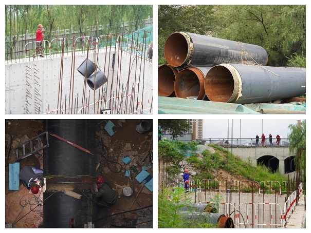 趙永軍介紹,現井底的工人們正在進行管道的焊接工作,每天可完成四道焊口,從焊接,探傷,PE保溫外護管的熔接,到打孔注料,流水施工,多作業面同時進行。現以單向每天18米的速度推進,截至目前,雙管推進約180余米,工程建設已完成過半。管道平行推進完工后,可進行管道噴砂、隔墻混凝土澆筑及恢復綠化等后續工程。