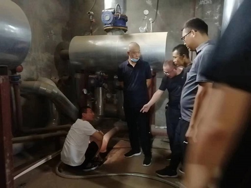 走訪中,每到一個(gè)運(yùn)營(yíng)所首先查看了當(dāng)天人員值班情況,并仔細(xì)地詢問(wèn)了各所防汛物資準(zhǔn)備情況。在理想佳苑熱力站和所里工作人員一起查看了地下站的積水坑和備用排污泵情況。在中海錦繡城熱力站和宇泰熱力站查看了站內(nèi)滲漏點(diǎn),并要求運(yùn)營(yíng)所負(fù)責(zé)人盡快和物業(yè)聯(lián)系,解決滲水點(diǎn)存在的安全隱患,要即刻做好設(shè)備的防滴漏防水保護(hù)。在檢修所一次網(wǎng)抽水現(xiàn)場(chǎng)作業(yè)現(xiàn)場(chǎng),要求近兩天停止抽水作業(yè),保證施工作業(yè)安全,同時(shí)將工作重心轉(zhuǎn)移到近兩天防汛排水保障搶險(xiǎn)任務(wù)中。