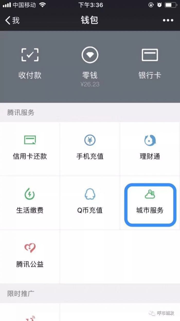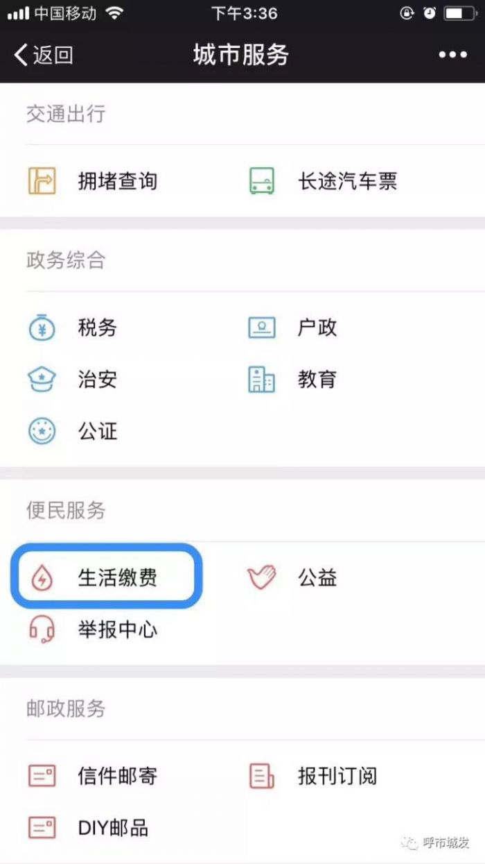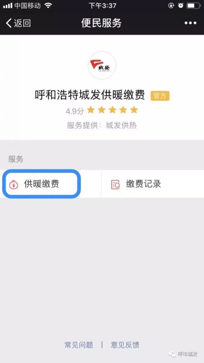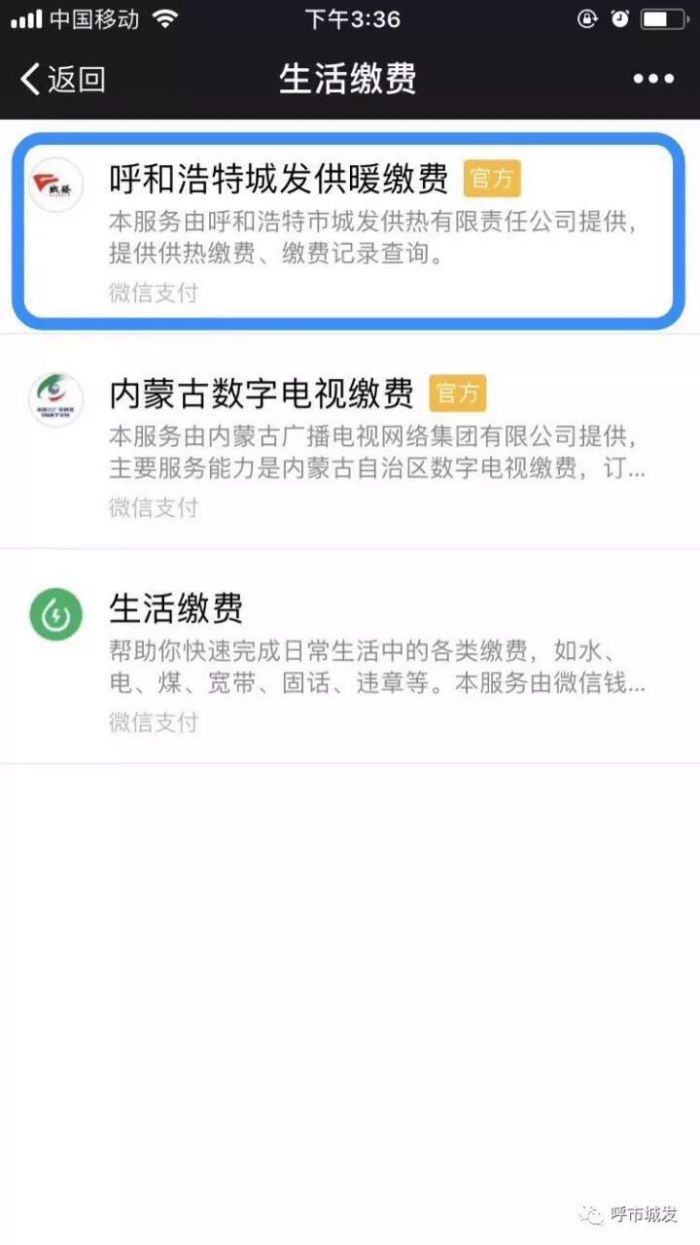 正確的微信繳費流程:我-錢包-城市服務-便民服務(生活繳費)-呼和浩特城發供暖繳費(官方)