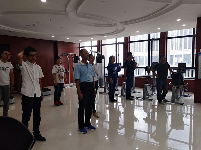 9月6日上午8時(shí)30分,激情洋溢的樂曲準(zhǔn)時(shí)在城發(fā)集團(tuán)19樓健身房響起,城發(fā)公司的20余名干部職工隨著鏗鏘有力的節(jié)拍,舒展身姿,精神抖擻地跳起了健身操。這是城發(fā)公司工會(huì)為備戰(zhàn)市工間操比賽作的一次賽前集訓(xùn)。