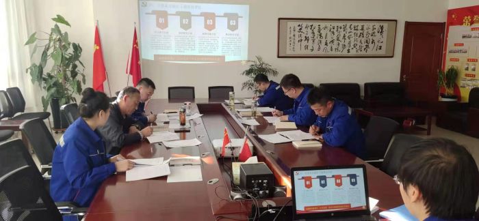 1114日下午,物業公司黨支部組織全體黨員、入黨積極分子召開黨員大會,支部書記娜仁同志主持會議,城發公司黨委副書記張永同志參加學習。
