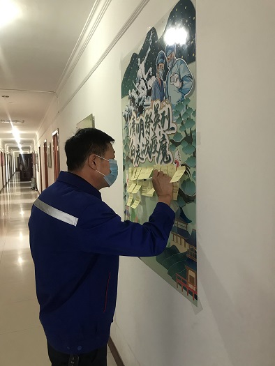 黨支部還制作了祭奠海報,張貼在樓道醒目位置,黨員群眾可以隨時進行祭掃活動,并留下祭掃寄語,祭奠在中國革命、建設、改革歷史進程中英勇犧牲烈士的同時,致敬在抗擊疫情一線犧牲的醫護人員、公安干警等"逆行英雄"。