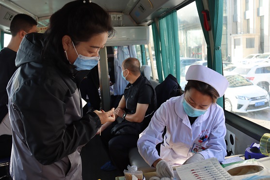 上午830分,市中心血站獻血車駛入城發集團院內,前期工作準備就緒后,獻血活動正式開始。城發物業公司黨支部書記娜仁早早來到集團一樓大廳活動現場,率先垂范,帶頭報名義務獻血。在娜仁書記的帶領下,公司的黨員干部和職工紛紛加入到獻血的隊伍中。血站的工作人員認真地一一登記信息、血樣檢驗、測量血壓……整個過程嚴格按照無償獻血和疫情防控有關規定井然有序進行著。