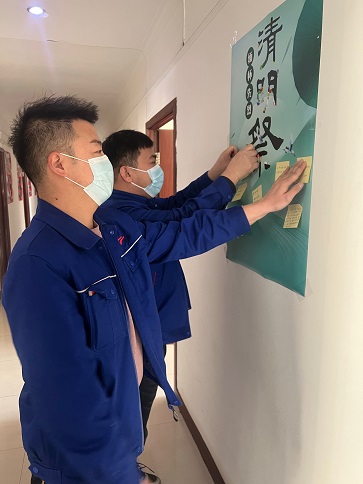 受新冠肺炎疫情影響,避免人群聚集,黨支部制作了祭英烈、宣傳文明祭掃海報,張貼在樓道醒目位置,引導黨員干部在緬懷先輩的情懷中弘揚傳統、增進愛黨、愛國、愛社會主義的情感,通過留言寄語,表達對革命先烈的緬懷和崇敬之情,同時要求黨員干部要以身作則,努力在節儉治喪、文明祭掃等方面作表率,以實際行動影響和帶動身邊群眾,做文明之風的倡導者和傳播者,做革除陋習的先行者、移風易俗的推進者、文明祭祀的示范者。